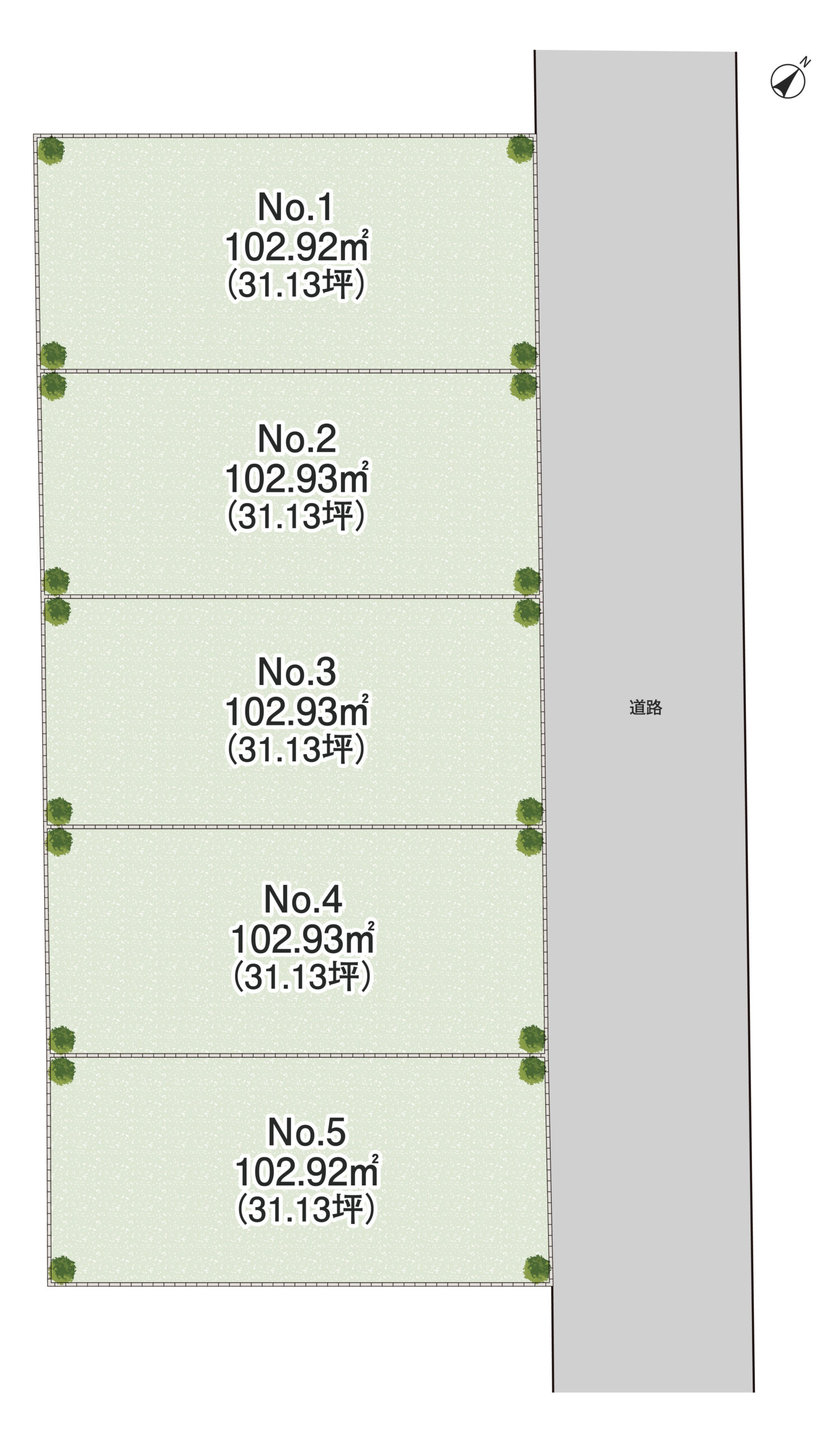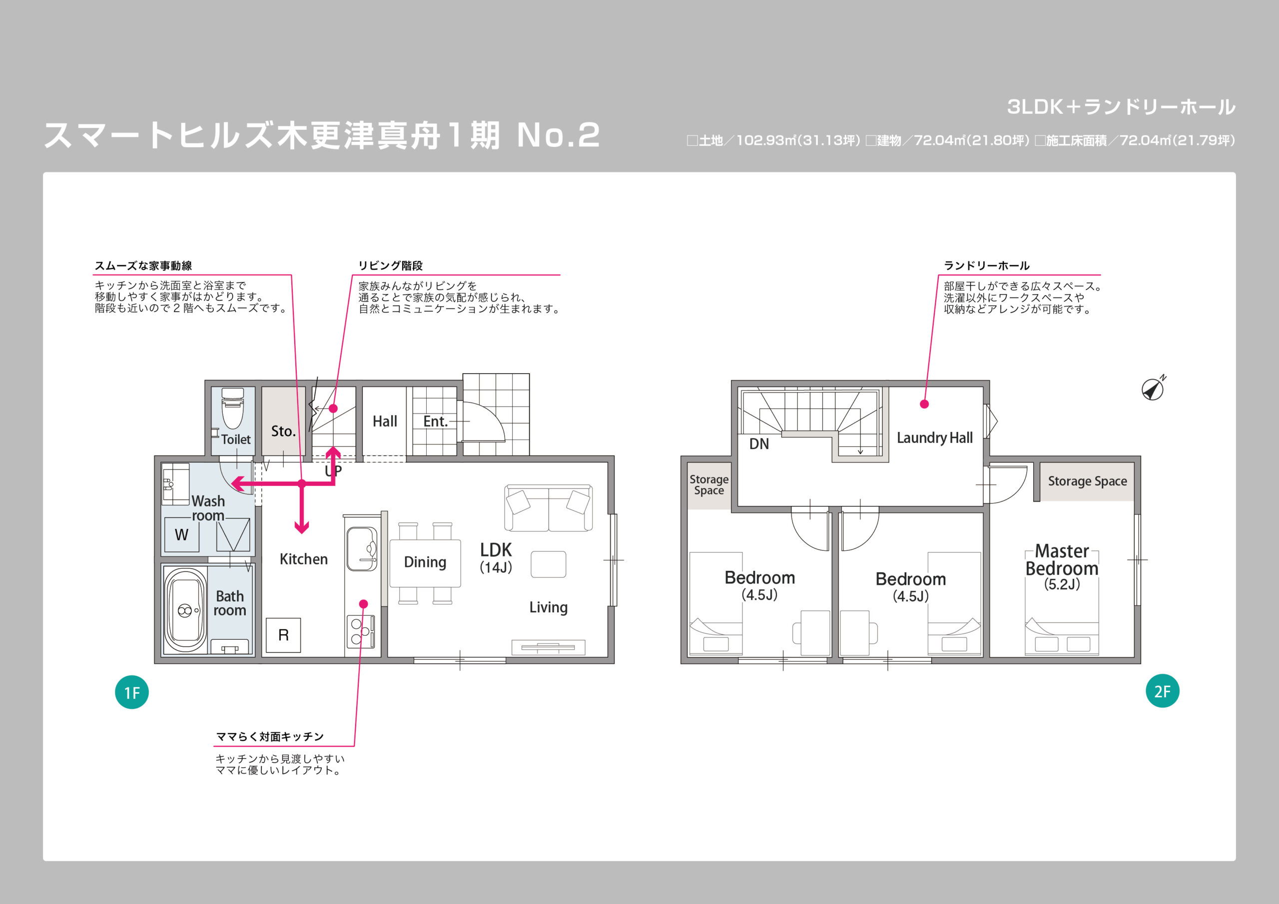 敷地面積/ No.3 102.93㎡(31.13坪),No.5 102.92㎡(31.13坪) 建物面積/ 72.04㎡(21.79坪)