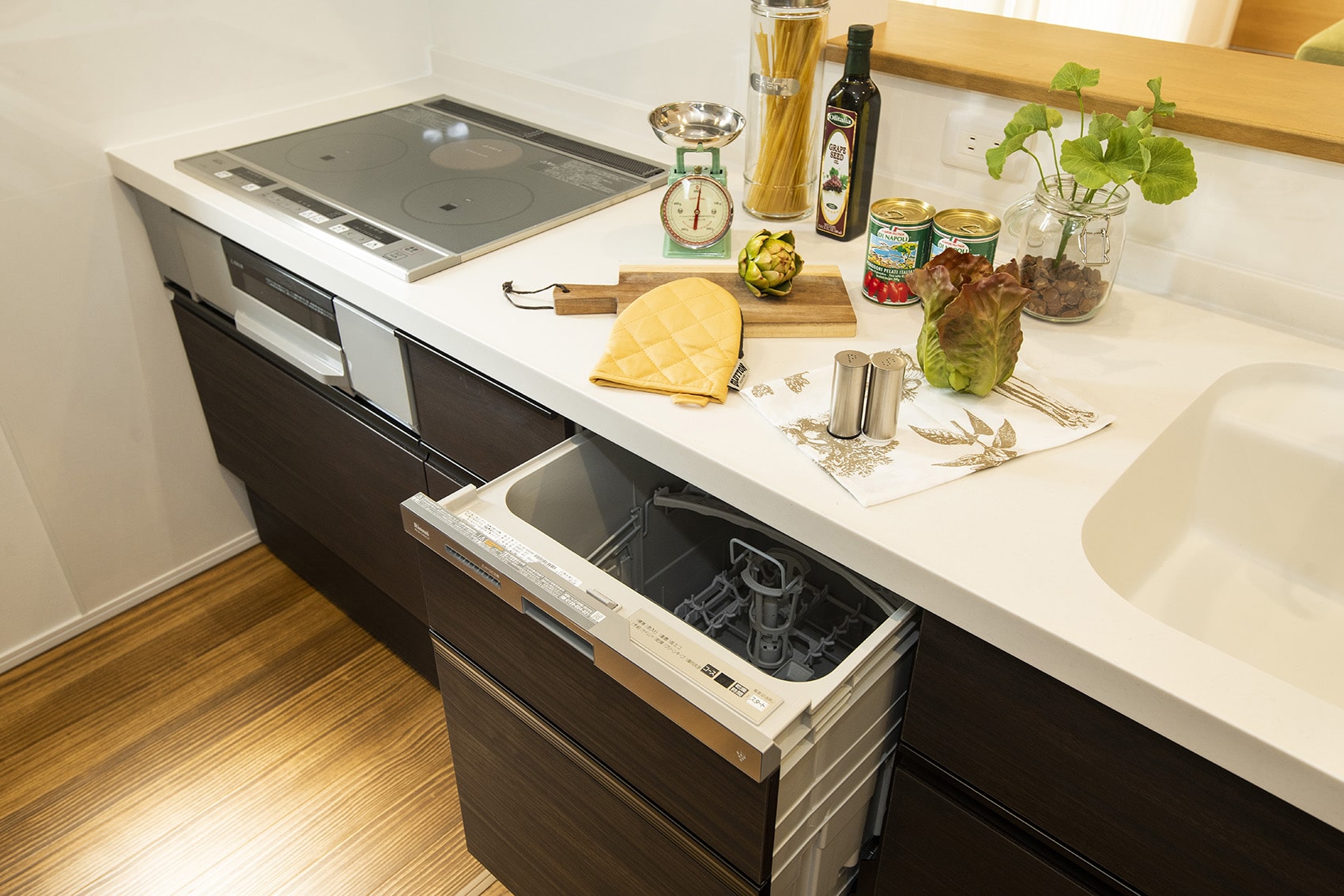 テーブルに内蔵できるカセットボンベ式のツーバーナーコンロで、本格的な料理も楽しめます。